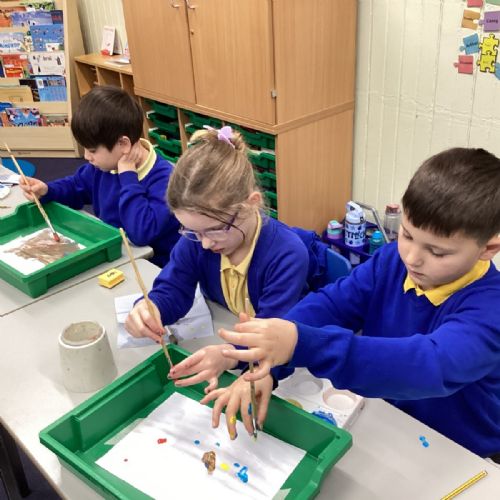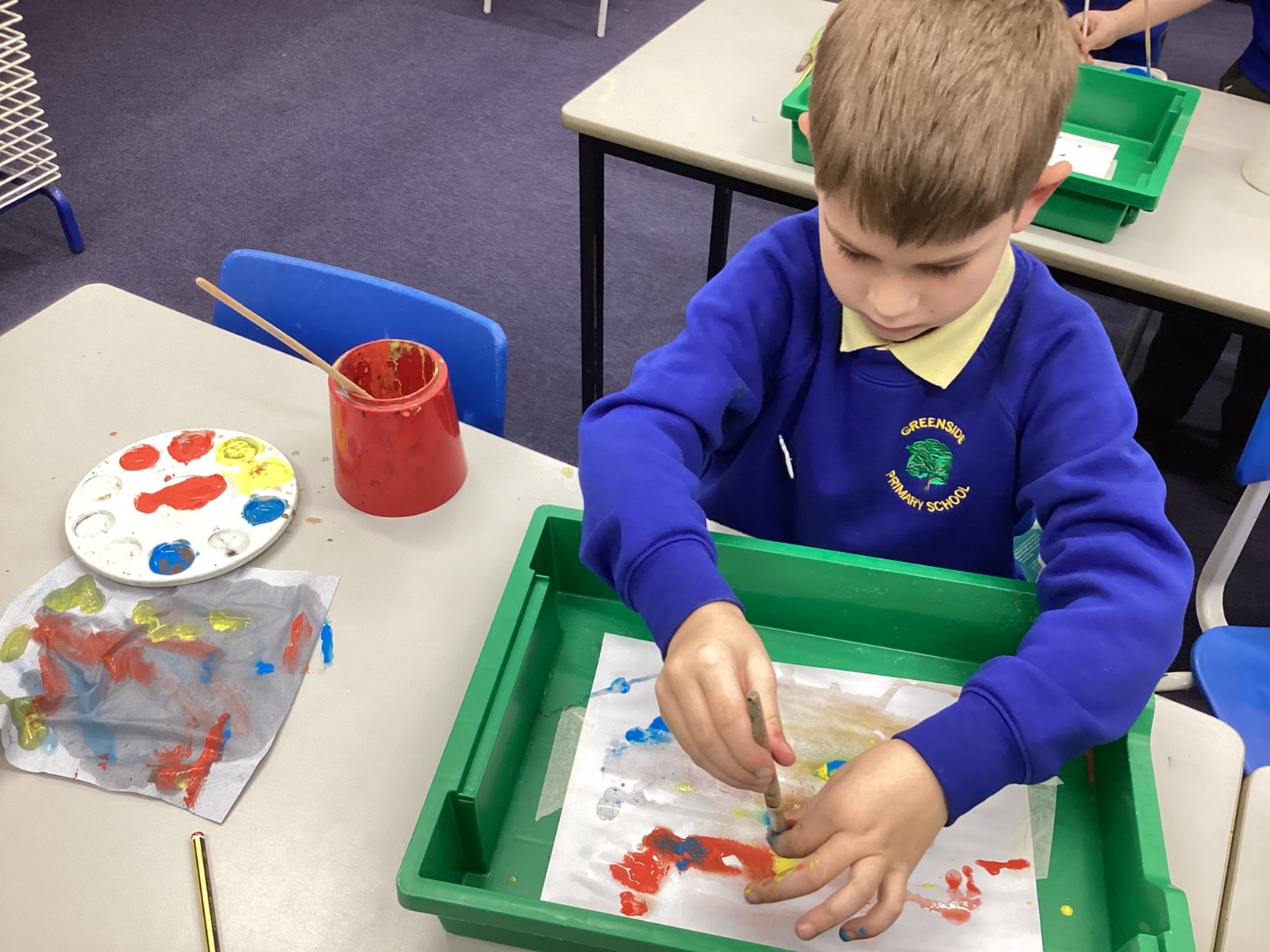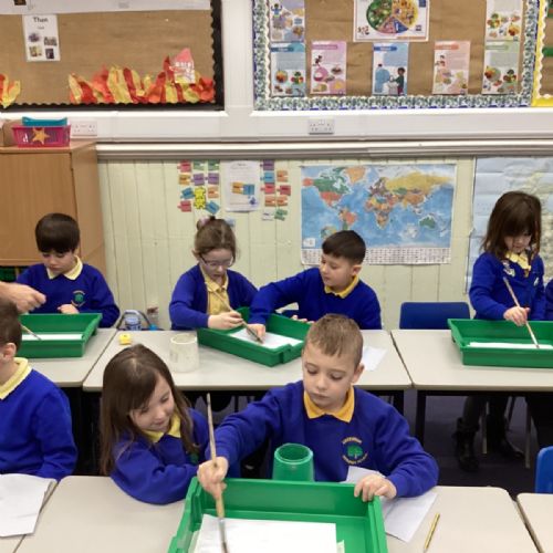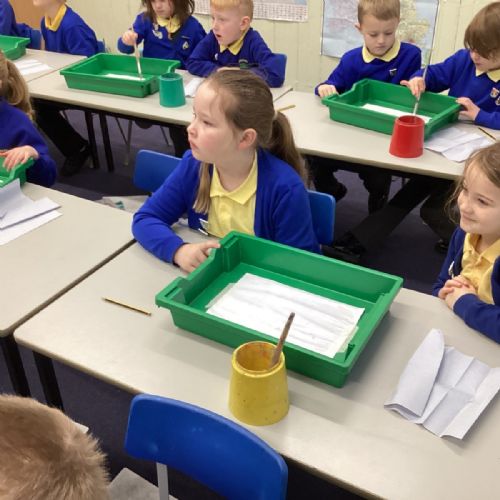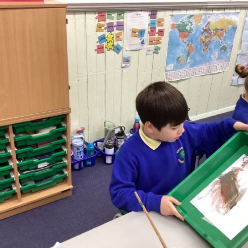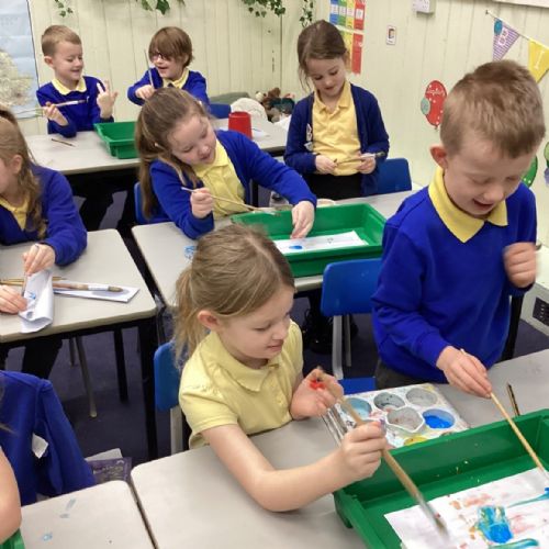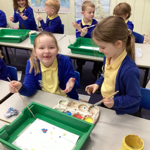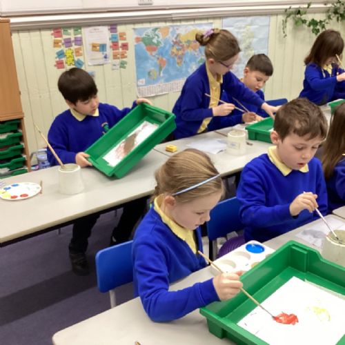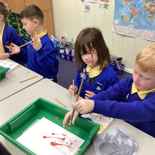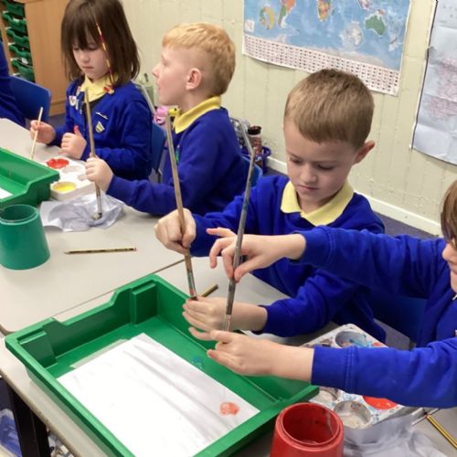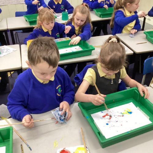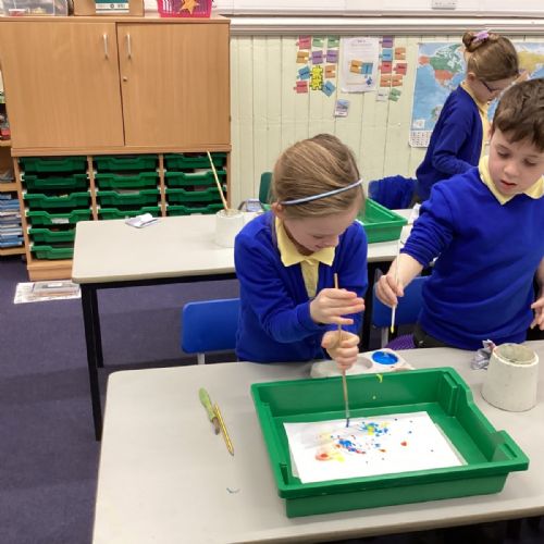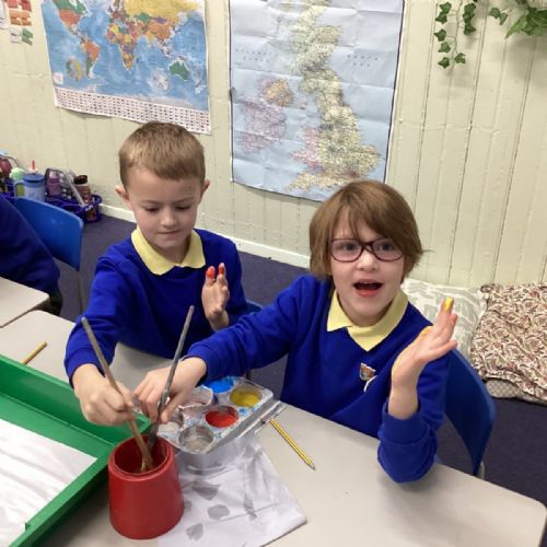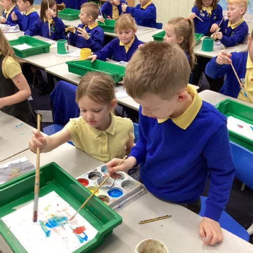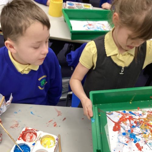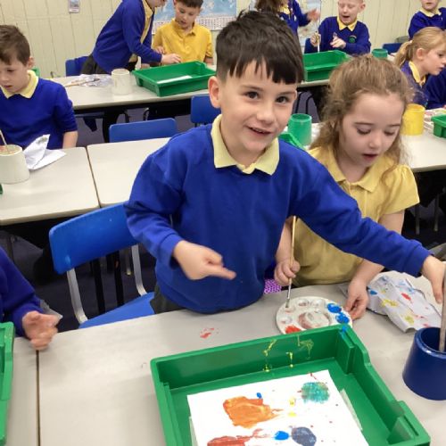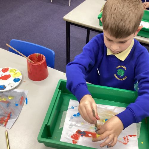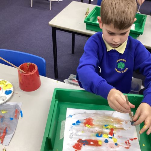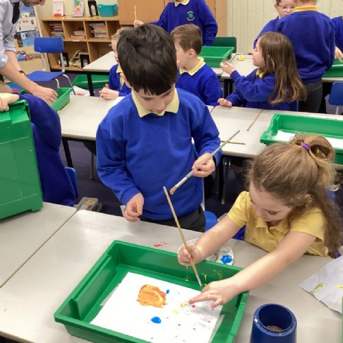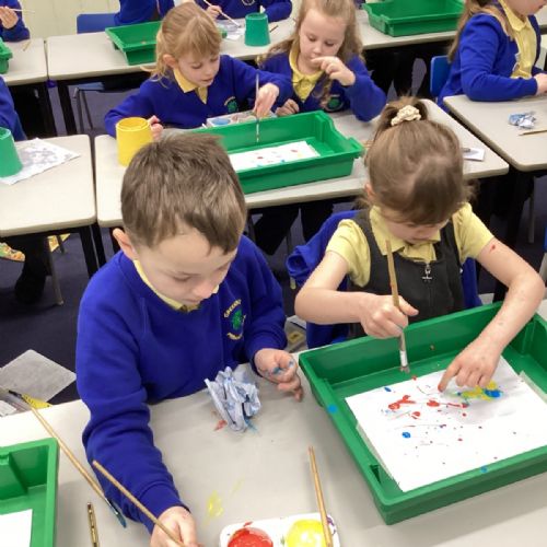 During art today, Year 2 investigated creating secondary colours by observing how primary colours mix. We started by wetting our paper with water so that it was damp. Then, we dripped two primary colours together on the page so that they would mix. By moving the tray, we were able to observe how the colours changed. At the end of the lesson, we discussed our results. Please enjoy looking at our pictures.