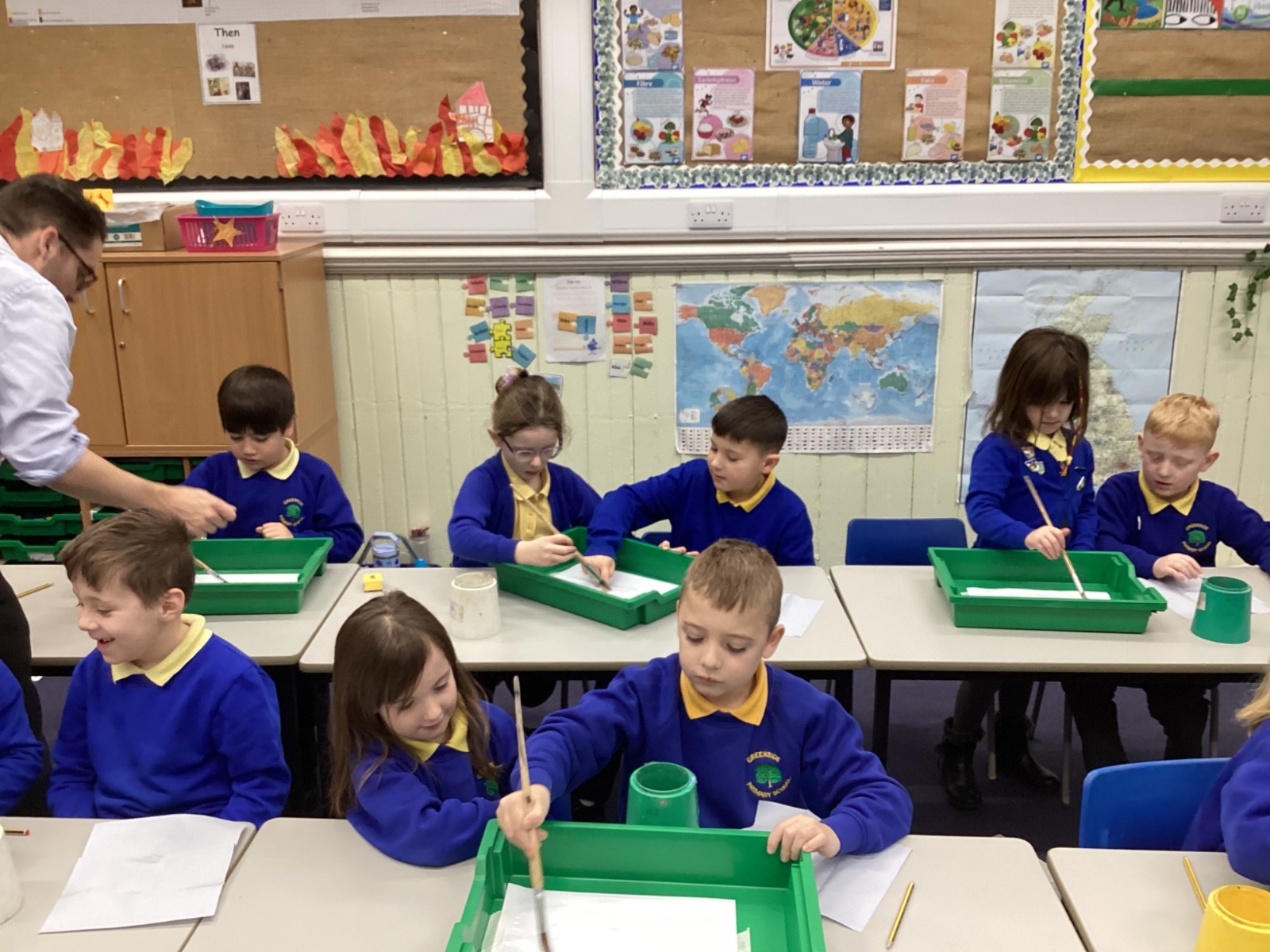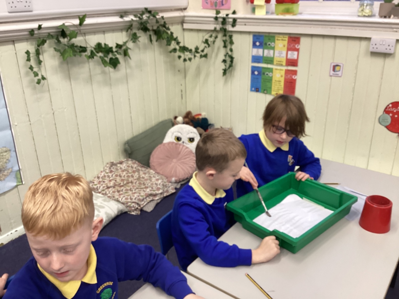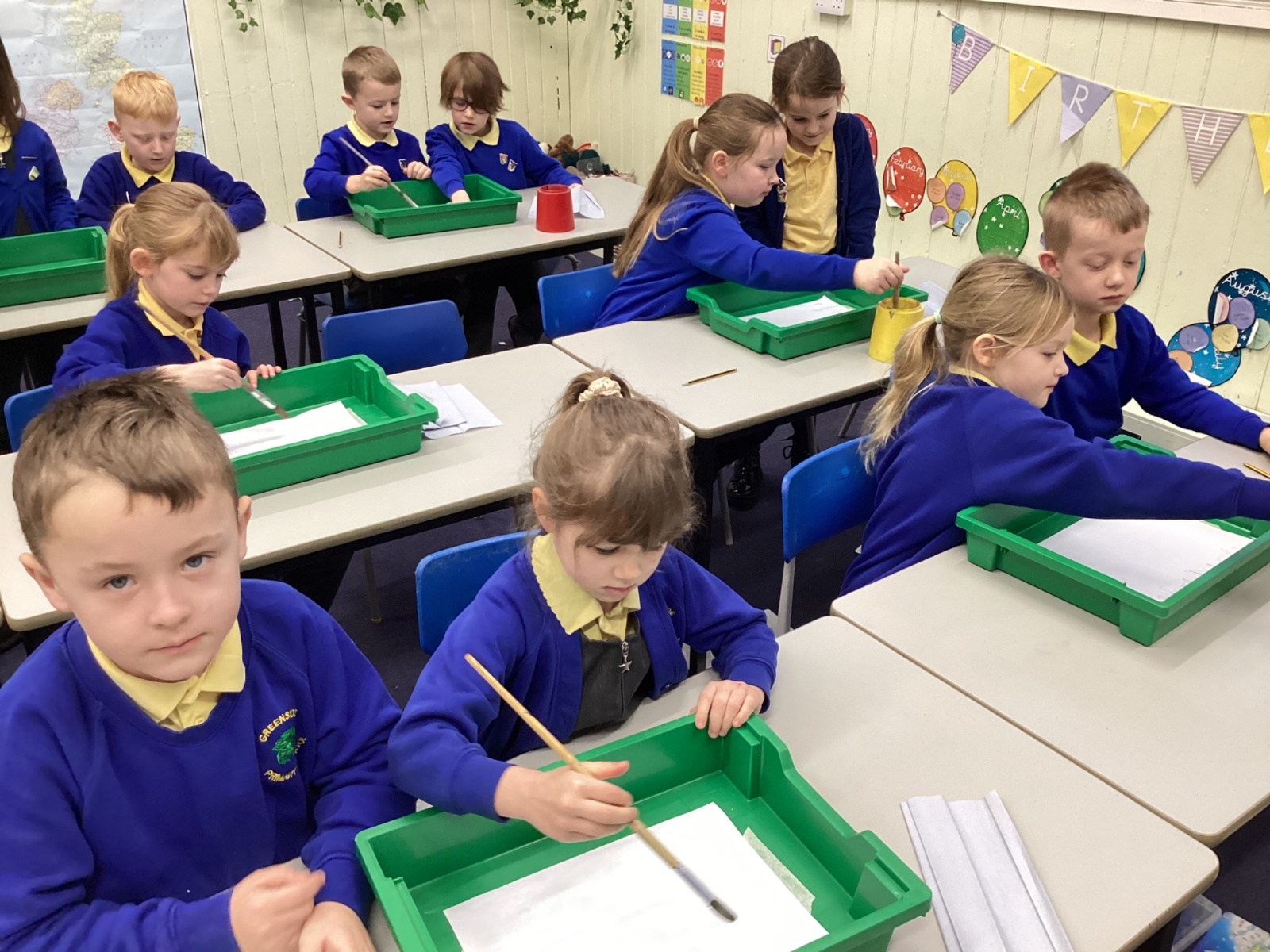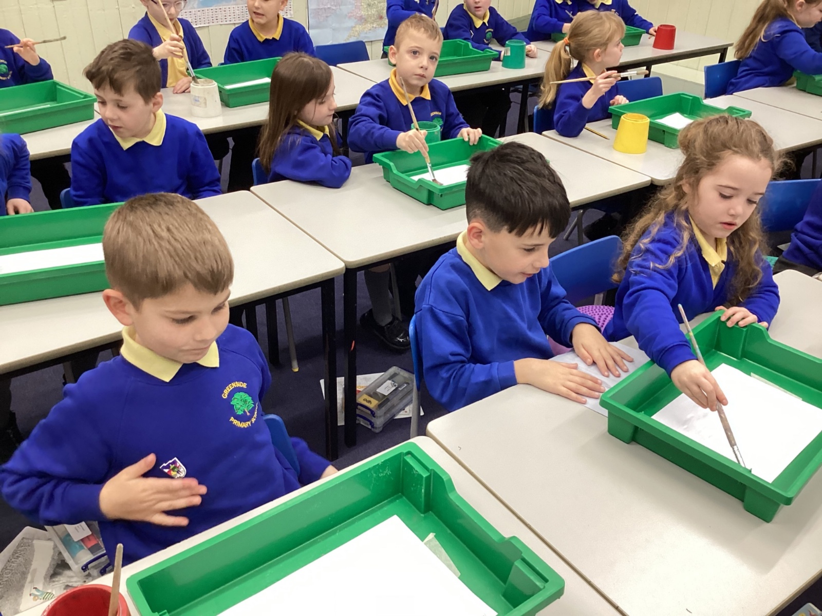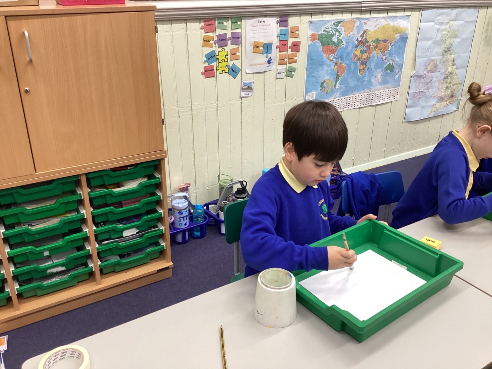 During art today, Year 2 investigated creating secondary colours by observing how primary colours mix. We started by wetting our paper with water so that it was damp. Then, we dripped two primary colours together on the page so that they would mix. By moving the tray, we were able to observe how the colours changed. At the end of the lesson, we discussed our results. Please enjoy looking at our pictures.