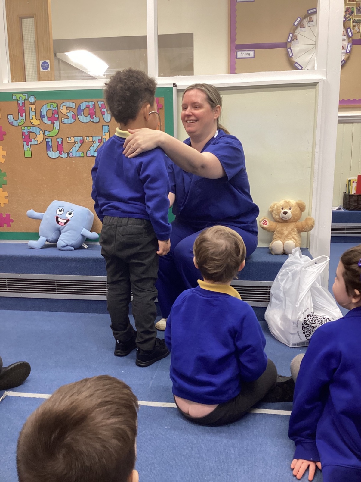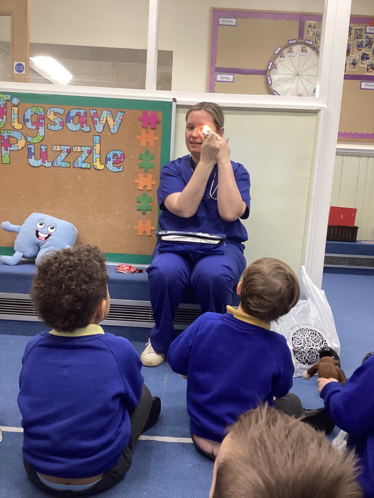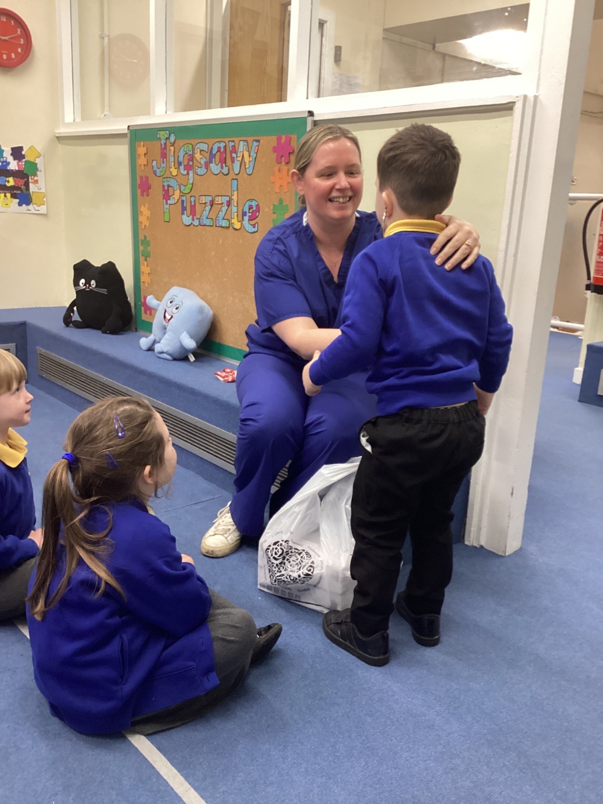 Nurse Faye came to visit our class and told us all about her important job. She showed us her uniform and explained how she helps people when they are feeling unwell or need medical care. The children were fascinated to hear about the different ways she looks after her patients.