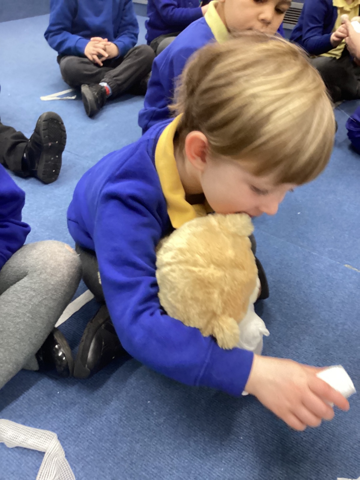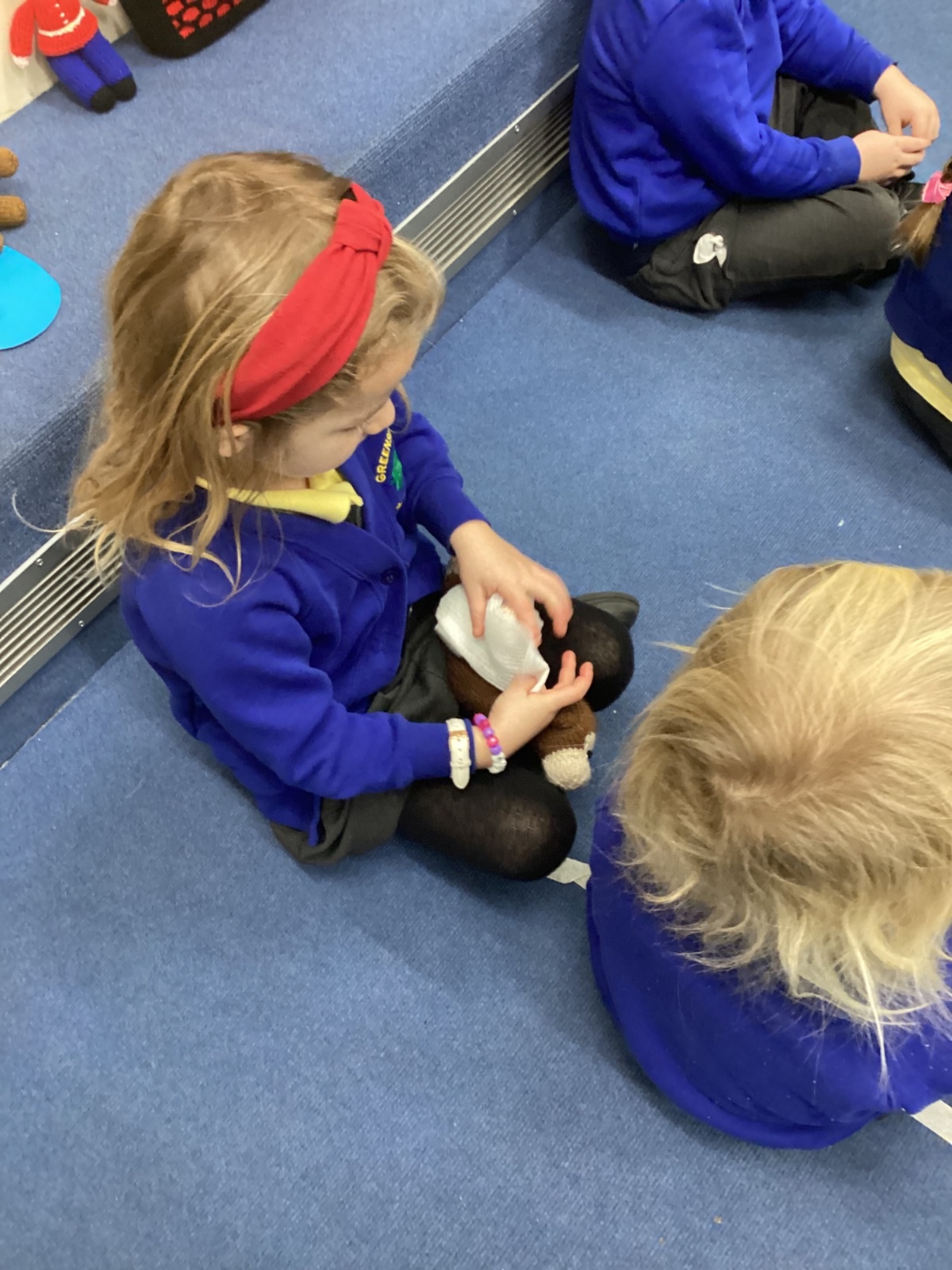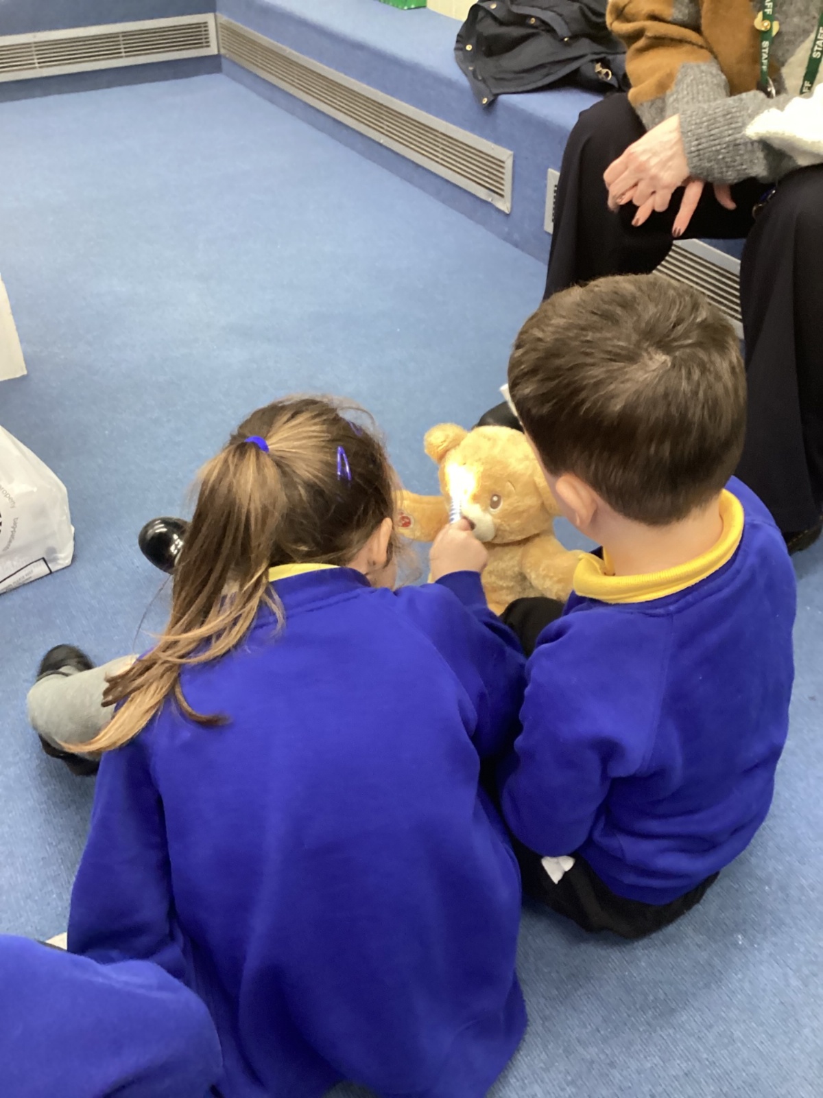 We even had some hands-on practice! Nurse Faye taught us how to apply a bandage, and everyone had a turn practising on a teddy bear. The children also used a stethoscope to listen carefully to their own heartbeats and tried out a special light to check eyes, just like real nurses do.