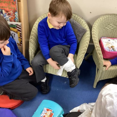 We had great fun learning about this important role and have loved continuing our learning in the classroom by pretending to be nurses in our role play area.