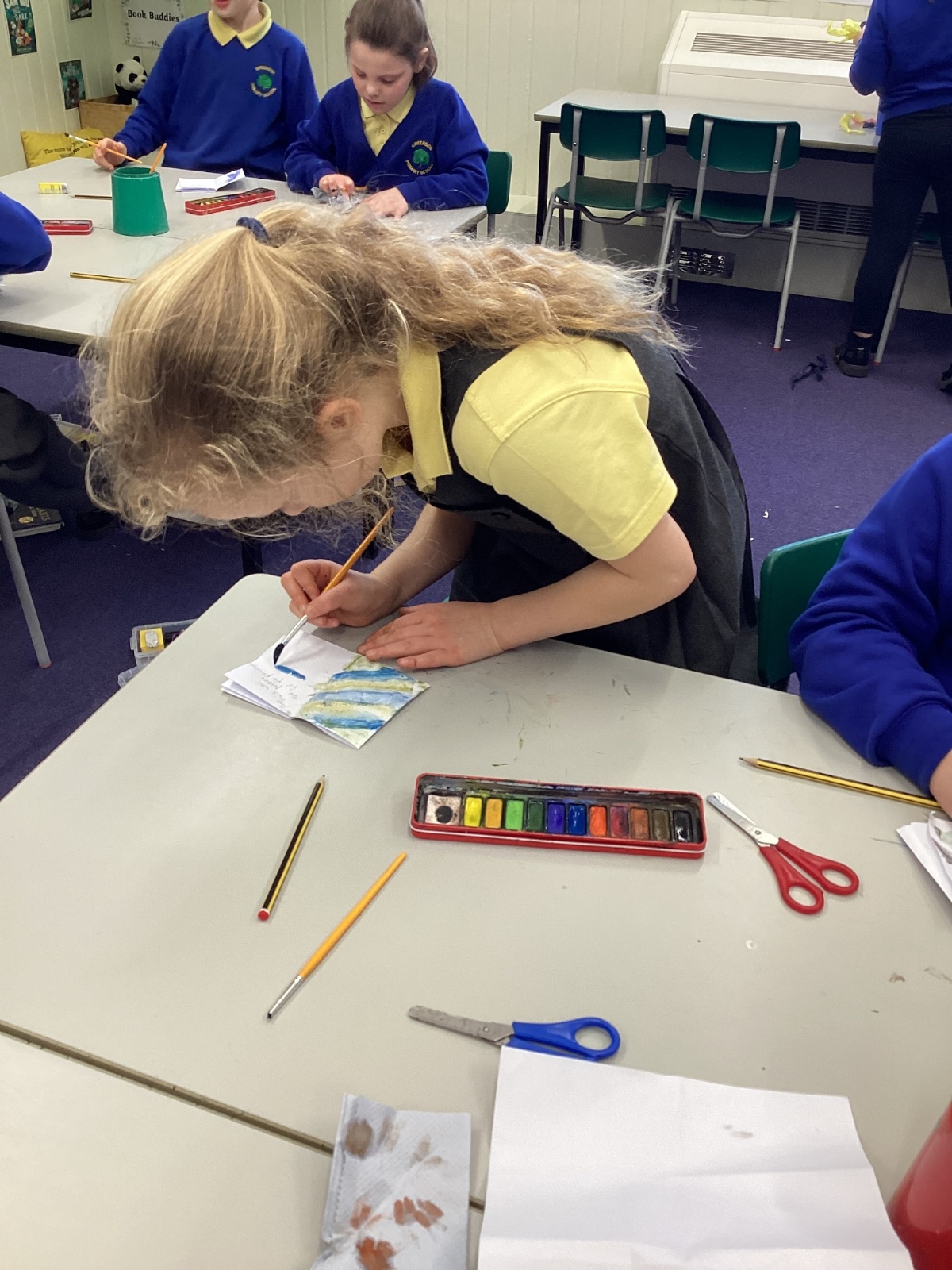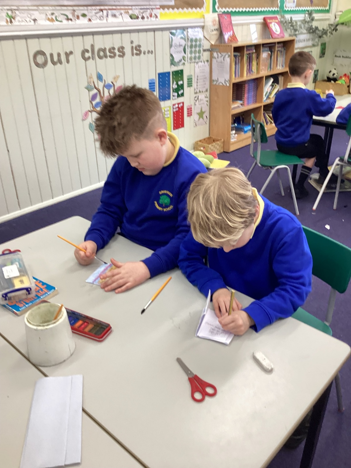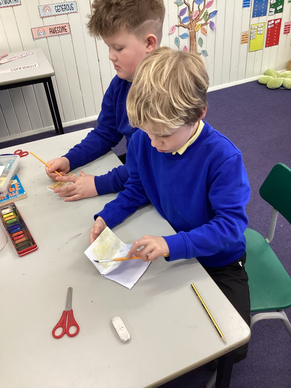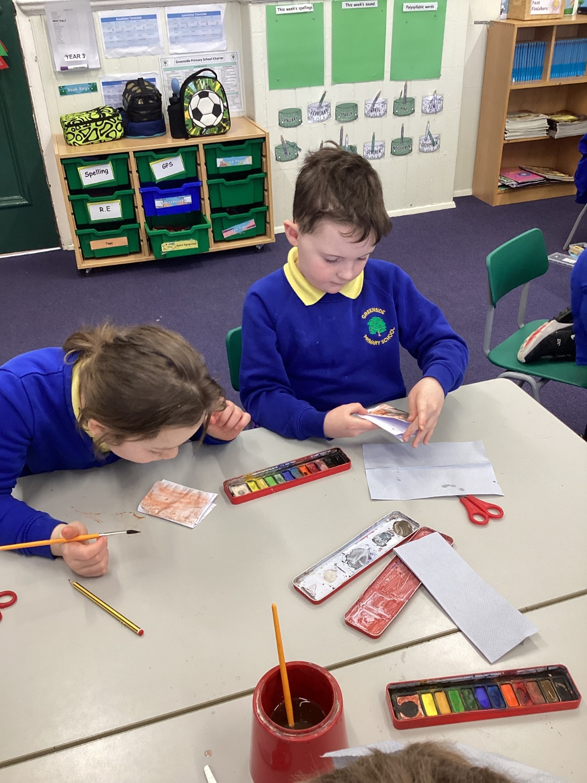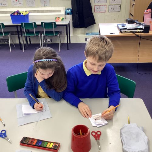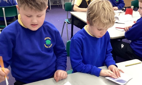The children carefully followed step-by-step instructions to fold their paper into a booklet. It was quite tricky at times, and they had to be patient and precise with their folds, but they showed great perseverance and teamwork to get it right.