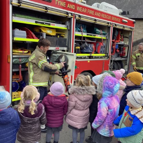 As part of our "People Who Help Us" topic, Nursery and Reception had a very special visit this afternoon from Tyne and Wear Fire and Rescue Service. The children were given a wonderful opportunity to learn about the vital work of firefighters in our community.