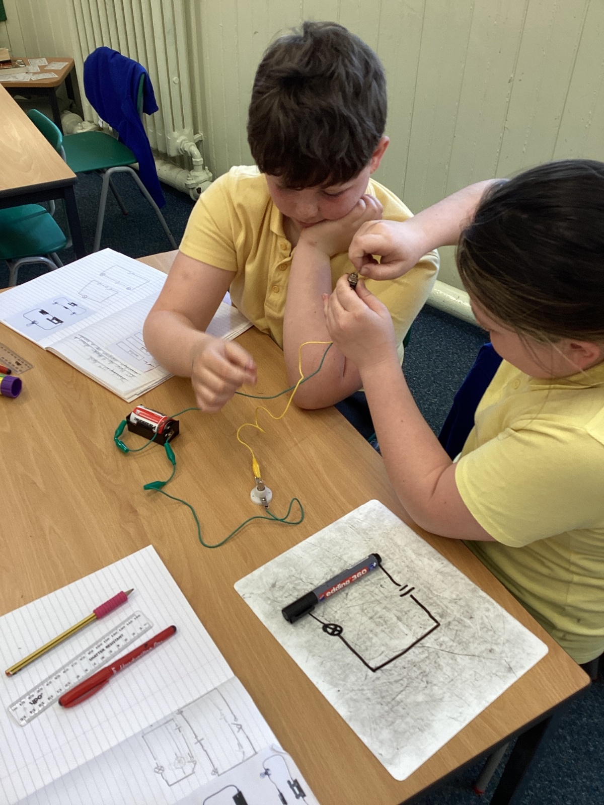 The children enjoyed experimenting with different circuit designs, drawing them, and exploring how they function. They have also learnt how to represent circuits accurately using standard scientific symbols.